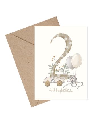 2 ÅRS FØDSELSDAGSKORT MED SMÅ SKO OG VINTAGE BIL