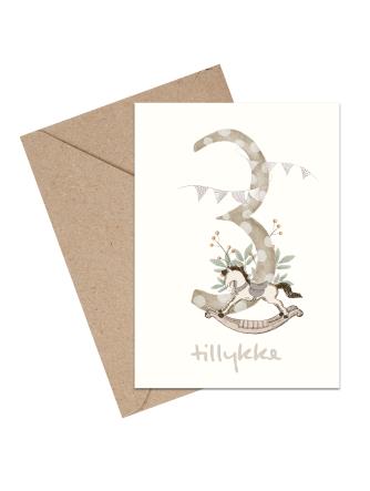 3 års fødselsdagskort med vintage legetøj i neutrale farve
