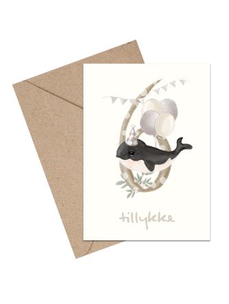6 års fødselsdagskort med en baby hval i neutrale farver.