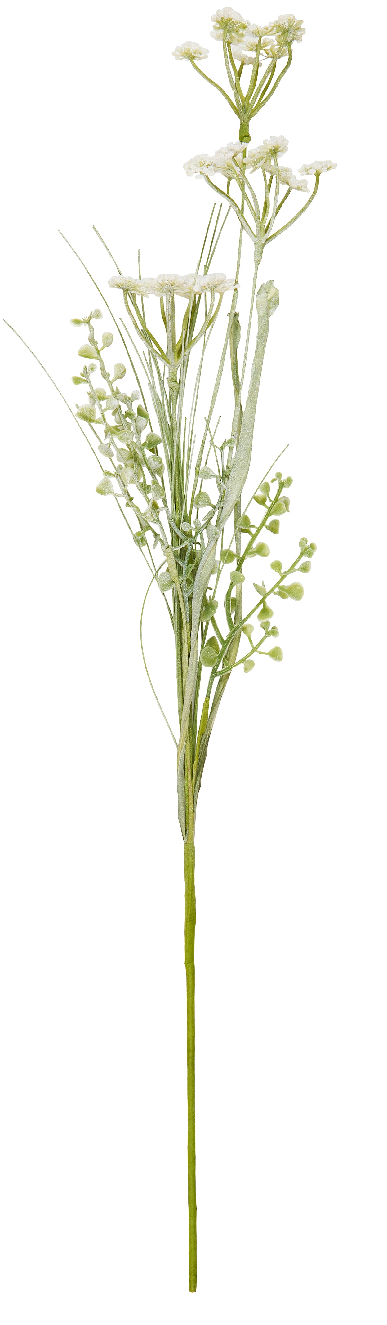 Fin kunstig markblomst i lys grønne og hvide nuancer