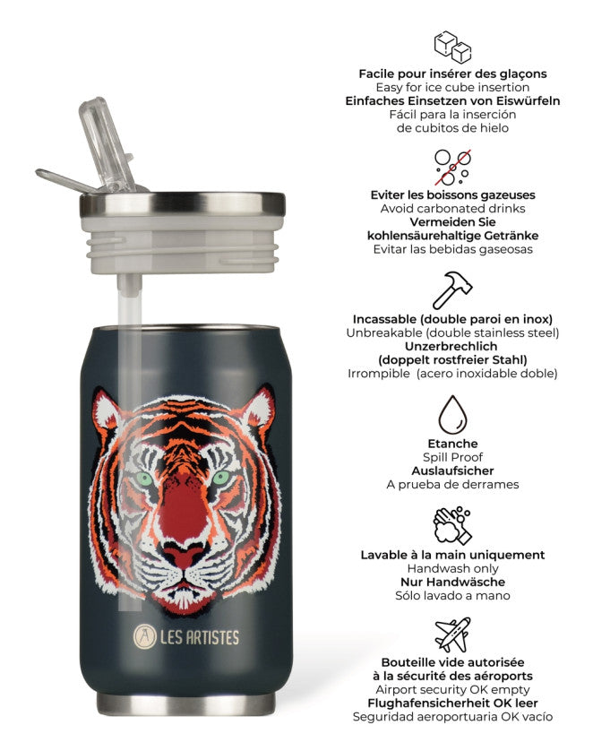 Den praktiske thermoflaske i dobbeltvægget rustfrit stål er designet som en dåsesodavand, som gør det ekstra sjovt for børn at huske at drikke.