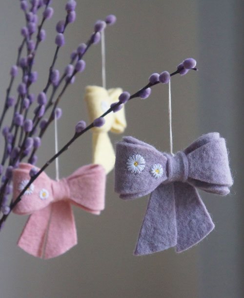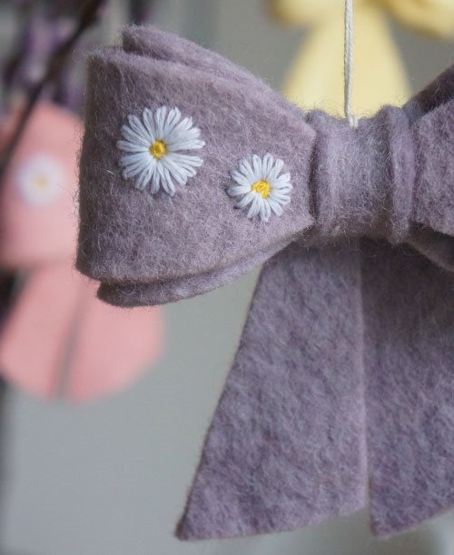 Smuk lilla sløjfe med blomster dekorationer til pynt