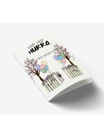 Sjovt fødselsdagskort fra Mouse & Pen med teksten Hip Hip HURRA.
