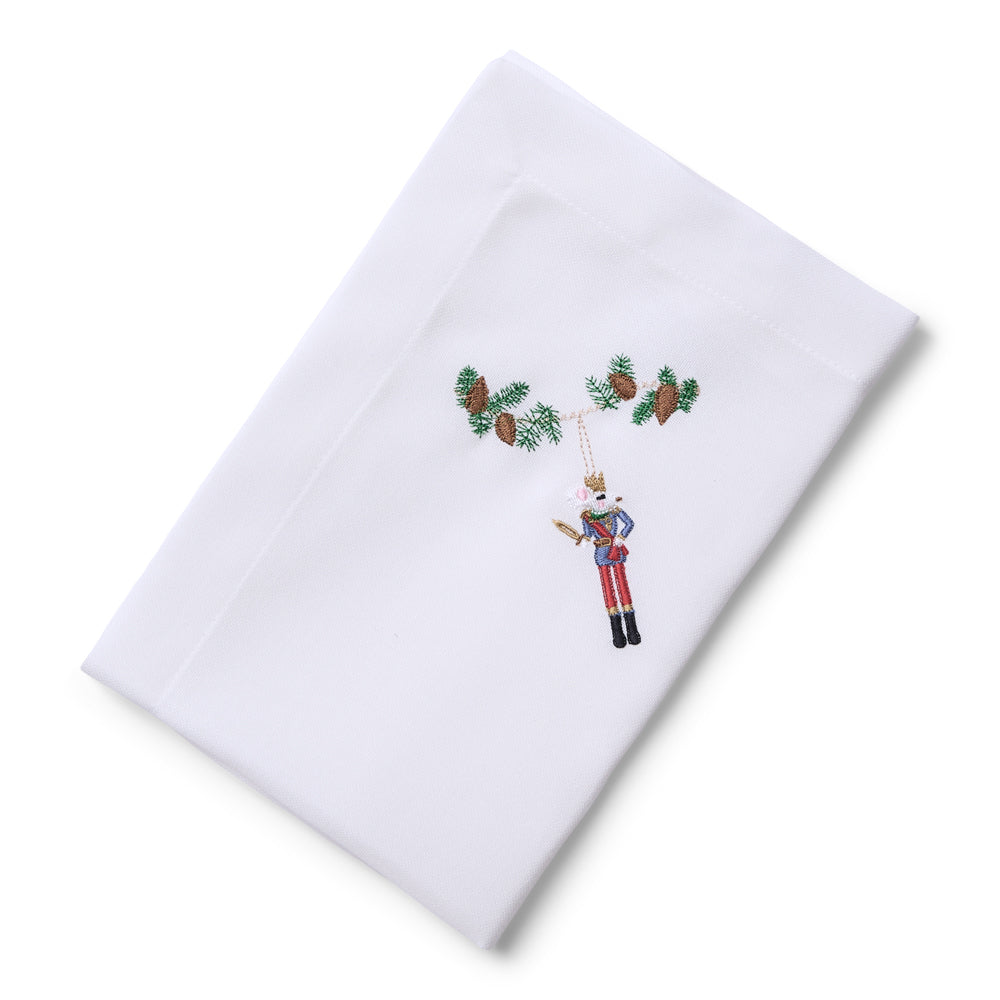 Servietten er smukt og broderet med musekongen – inspireret af eventyret om Nøddeknækkeren.