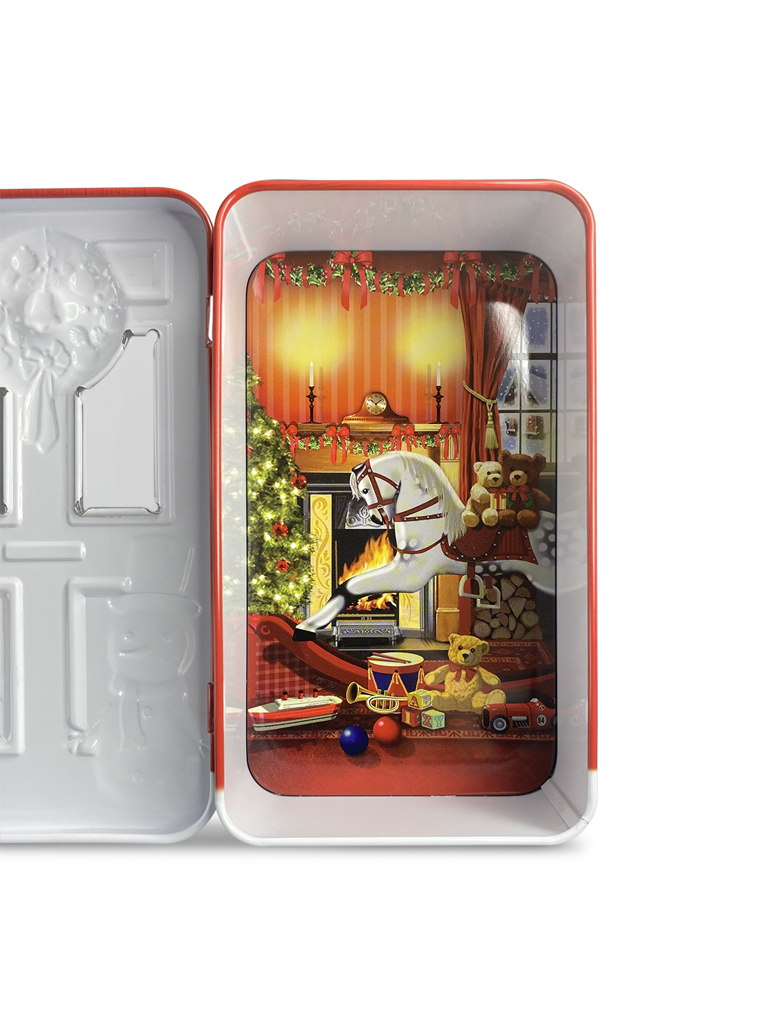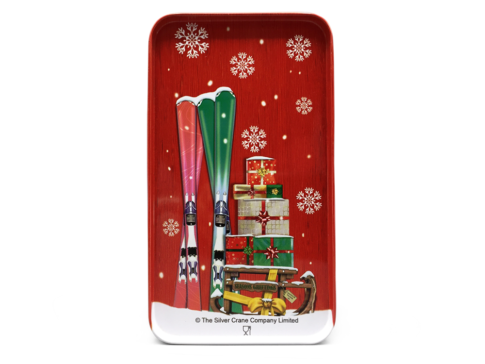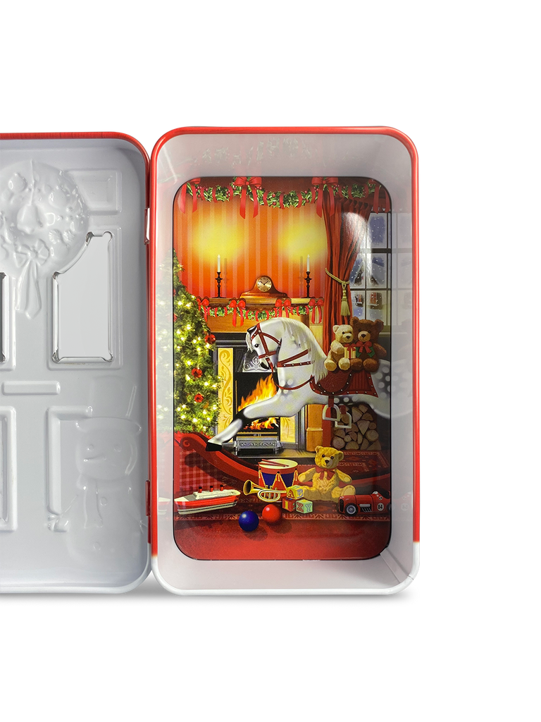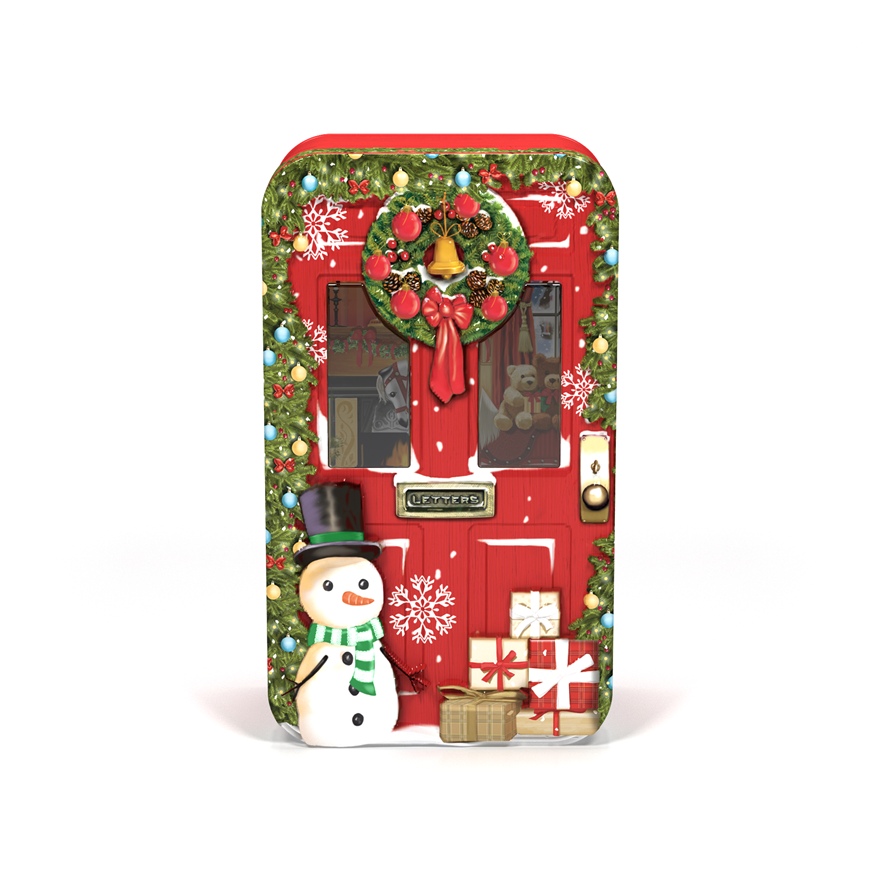 Kage dåse - Rød dør med snemand og julegaver