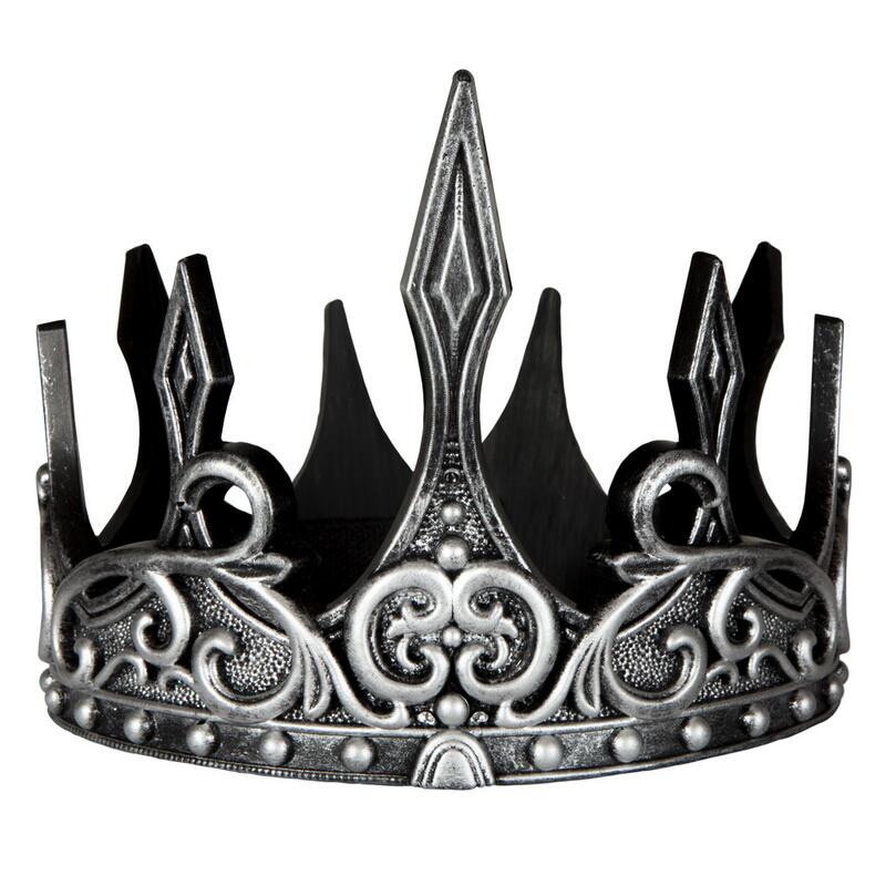 Flot Middelalder krone i sølv og sort. Kronen lukkes med velcro.