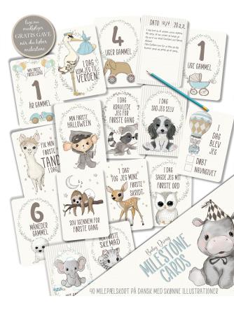 40 forskellige milepælskort med skønne illustrationer - perfekt til at forevige de dyrebare minder!