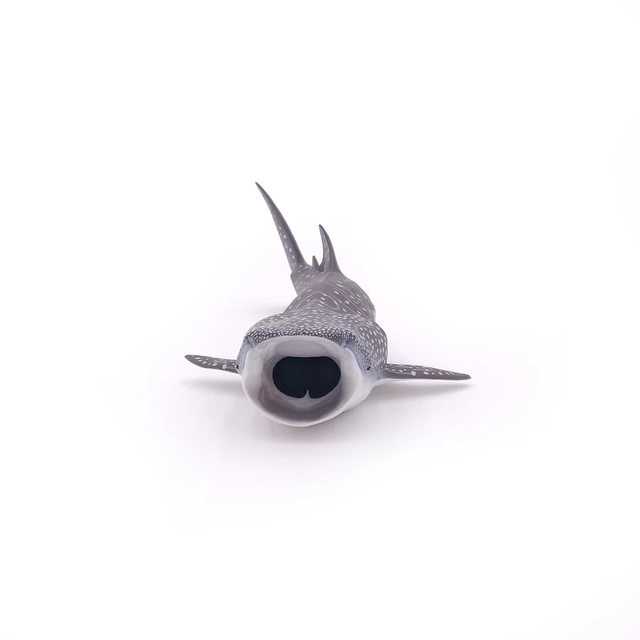 Hvalhajen er let at kende på sin enorme størrelse og sit karakteristiske udseende. Papo har fanget denne fredelige kæmpe med utrolig præcision: